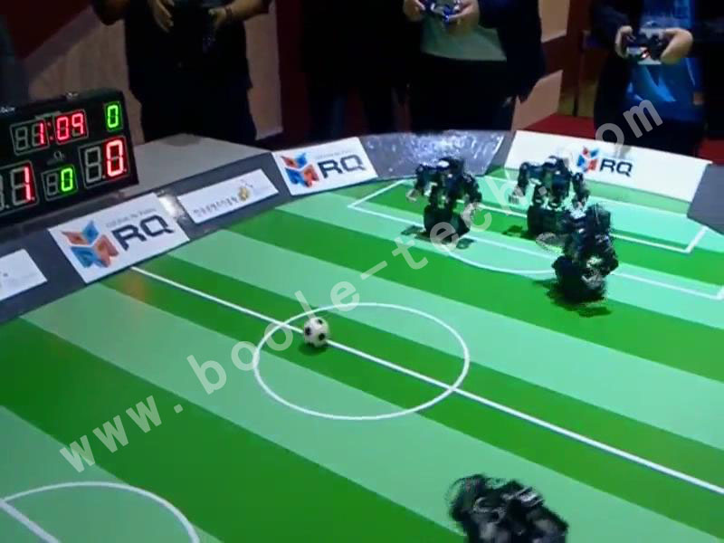 機器人足球比賽是一個互動性很強的環(huán)節(jié),同學們可以遙控機器人行走、踢球、撲球、甚至跌到了,還會迅速爬起來繼續(xù)作戰(zhàn)!現(xiàn)場不斷傳出一陣陣的歡呼聲。